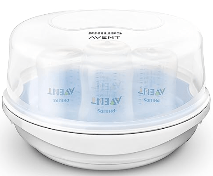 I really didn’t want another appliance hanging out on our limited counter space, so I opted for the microwave version. I made the right call for sure! Only takes 4 minutes to sterilize your bottles and accessories, simple to clean and store. I absolutely love this!