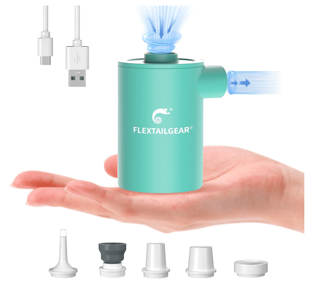 I like having this air pump in my beach bag, to save my lungs from blowing toys up. It’s much faster than me trying to blow them up, and love that it fits in the palm of my hand.