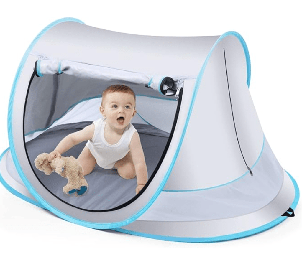 Love this option to bring your little one to the beach, but not be in the direct sun the whole time. It folds up super compact, and you can leave it in the trunk to use anytime you need a play place outside.